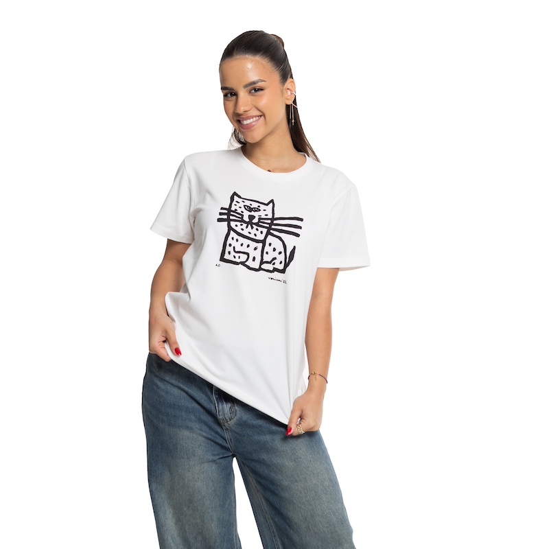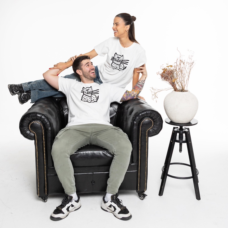 Unisex majica sa mačkom (lat. Felis Catus), čiji je predak afrička divljka mačka (lat. Felis silvestris lybica), je unikatan poklon. Mačor predstavljen u ovom radu ima nakostrešenost svojih predaka, ali mu autor Nikola Velicki, koji je prepoznatljiv i po svom istančanom humoru, dodaje i lucidnost i osmeh, što ga čini obožavanom kućnom mačkom, lovcu kome se ne može odoleti. Isto tako, i unikatan poklon kojem se nije moguće ne obradovati.